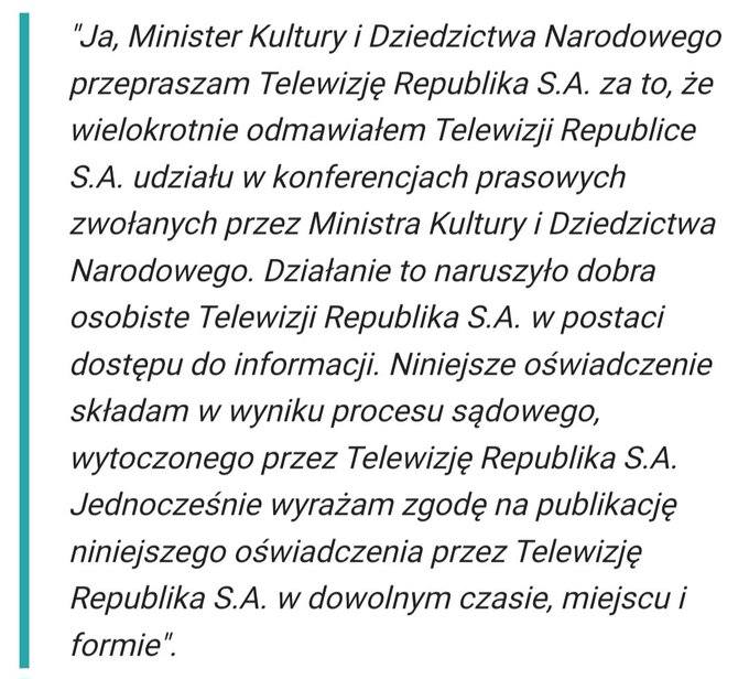 07 07 2024 Minister Kultury przeprasza Republikę. Rocznica.