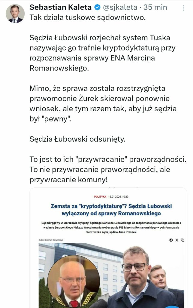 12 stycznia 2026 r. Pisaliśmy o tym (cała Polska pisała), że sędzia Łubowski zanegował potrzebę ścigania w Europie Romanowskiego.