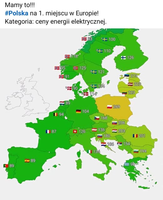 W roku 2025 r. Polska wskoczyła na pierwsze miejsce w Europie jak chodzi o cenę prądu.
