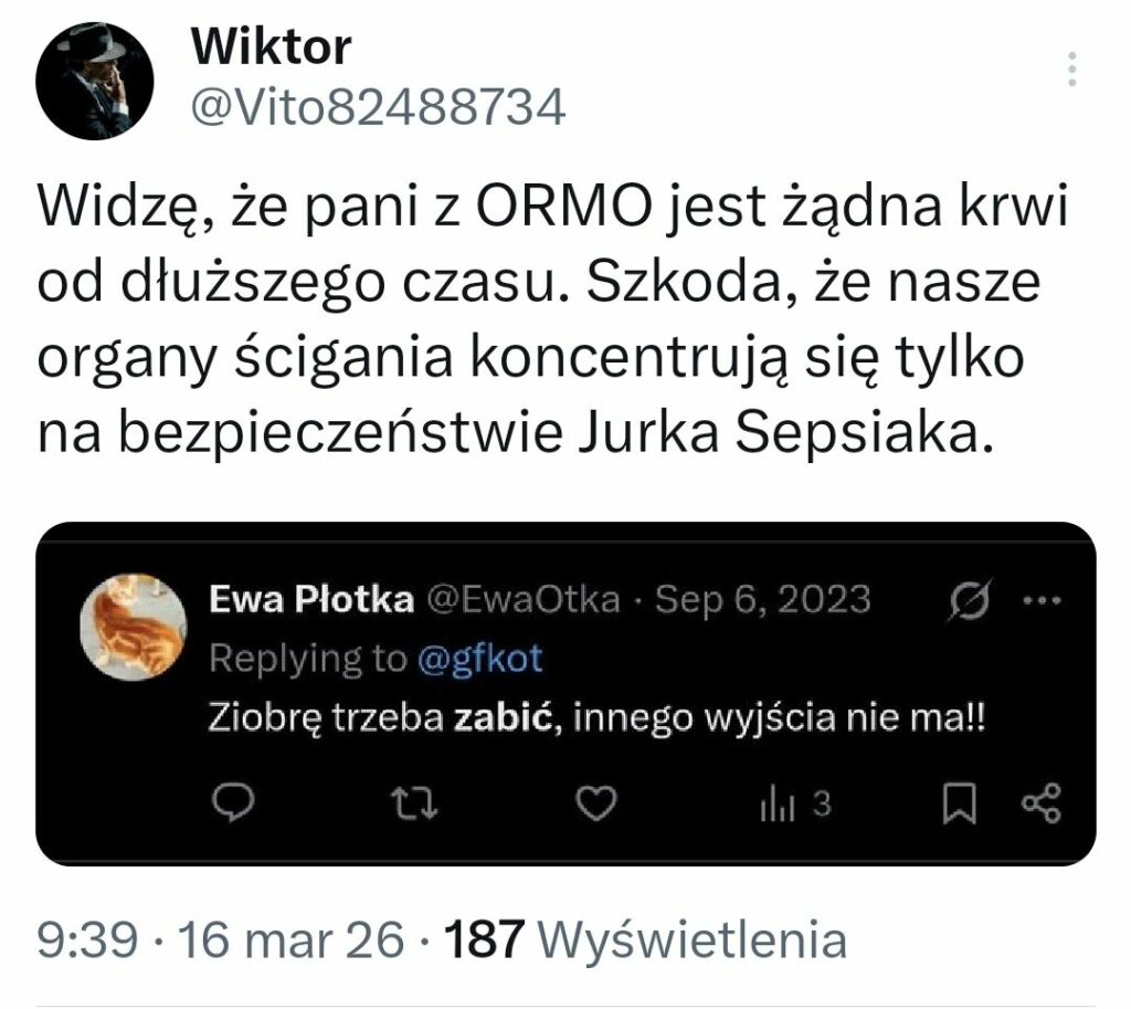 Ale ani policja ani prokuratura nie robi nic. W najbardziej drastycznych przypadkach – „przygląda się”. Oczywiście bezradnie „przygląda się” tylko wpisom zwolenników Koalicji 13 grudnia.
