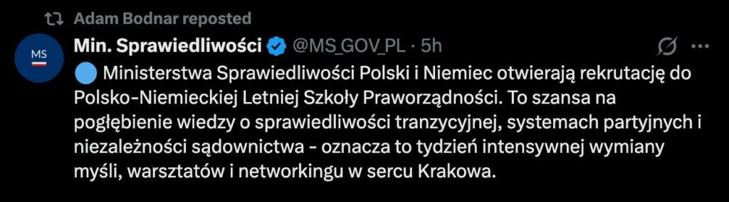 Ministerstwo Sprawiedliwości okupowane przez Żurka (a wcześniej Bodnara) urządza letnią szkołę rekrutacji niemieckich szpiegów, lobbystów i pożytecznych idiotów.